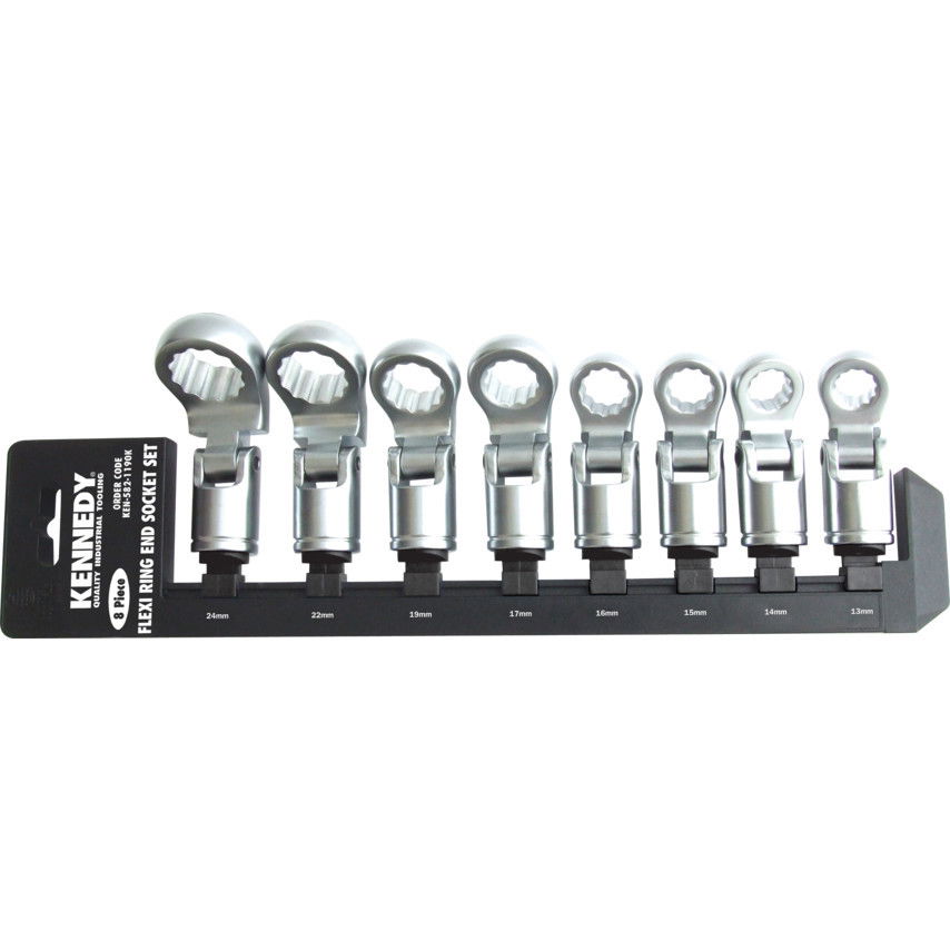 KENNEDY 13 - 24 mm dönthető végcsatlakozós csavarkulcsfej készlet, 8 részes