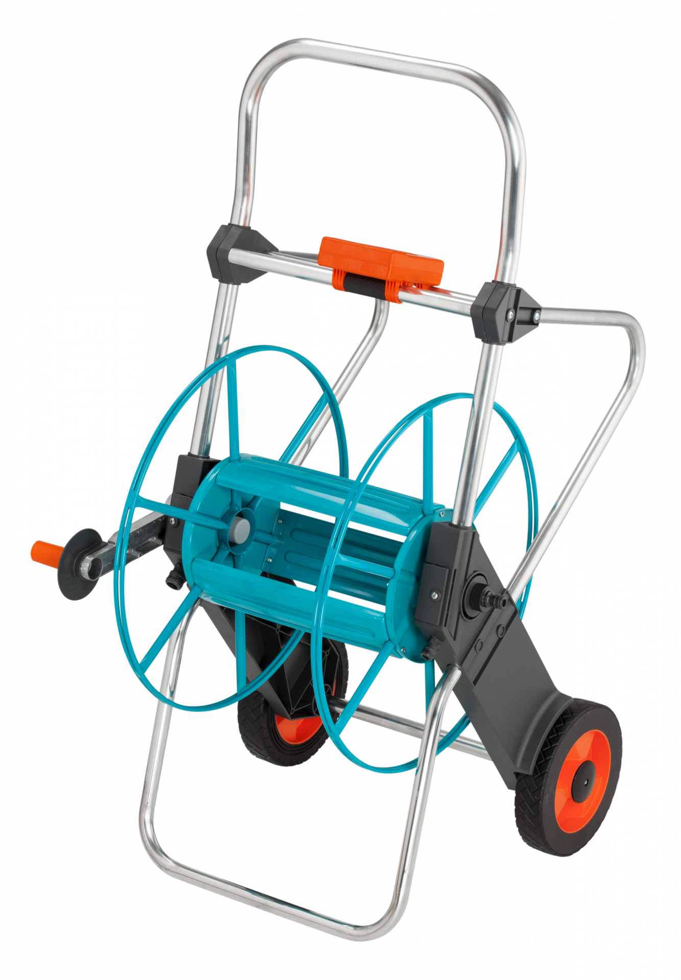 Az anyagának köszönhetően stabil és nagyon erős felépítésű tömlőskocsira nagy mennyiségű tömlő fér fel. A széles kengyel nagy stabilitást biztosít álló helyzetben, a maximális stabilitás érdekében azonban a kocsi le is fektethető.