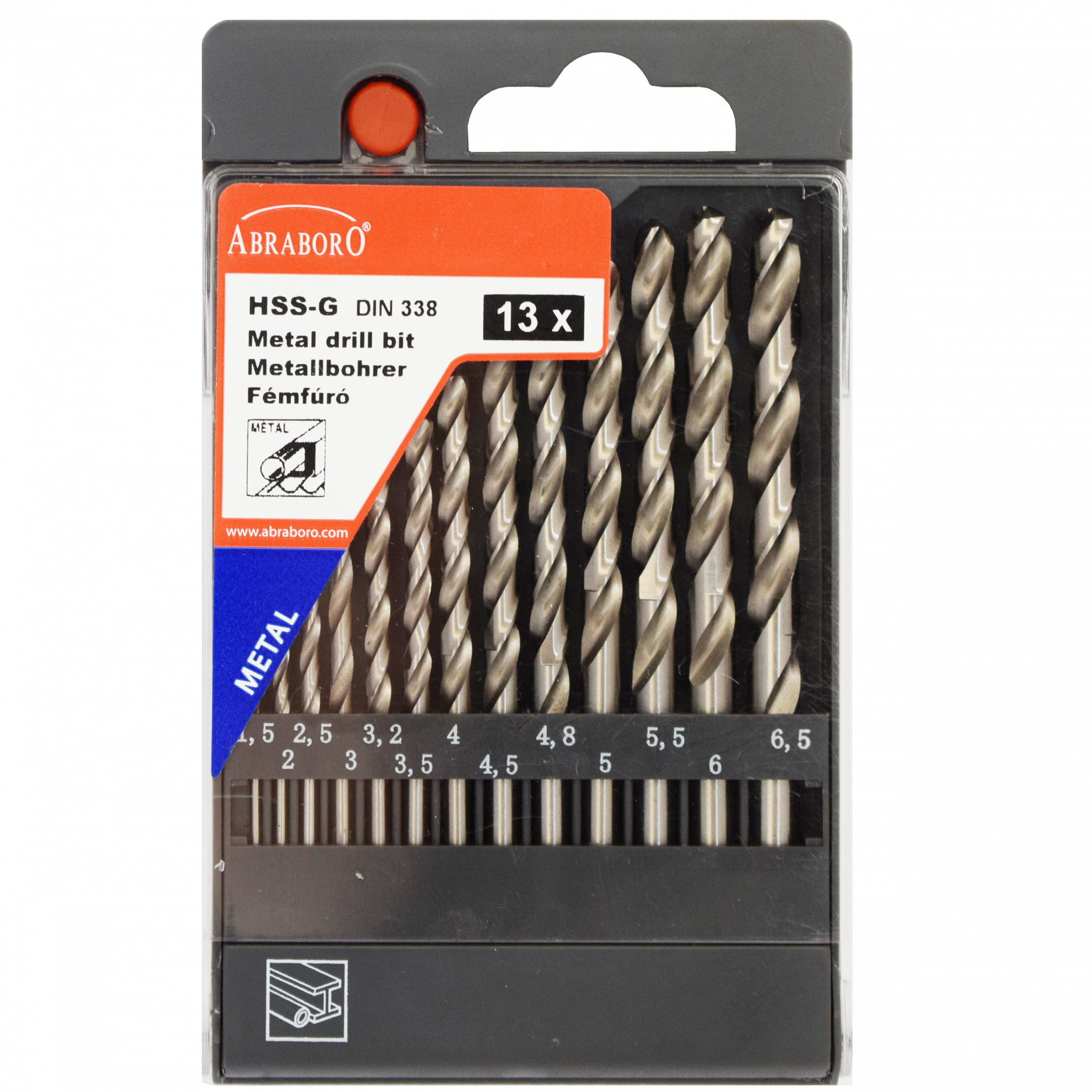 Abraboro HSS-GS 13 részes fémfúró készlet, műanyag dobozban