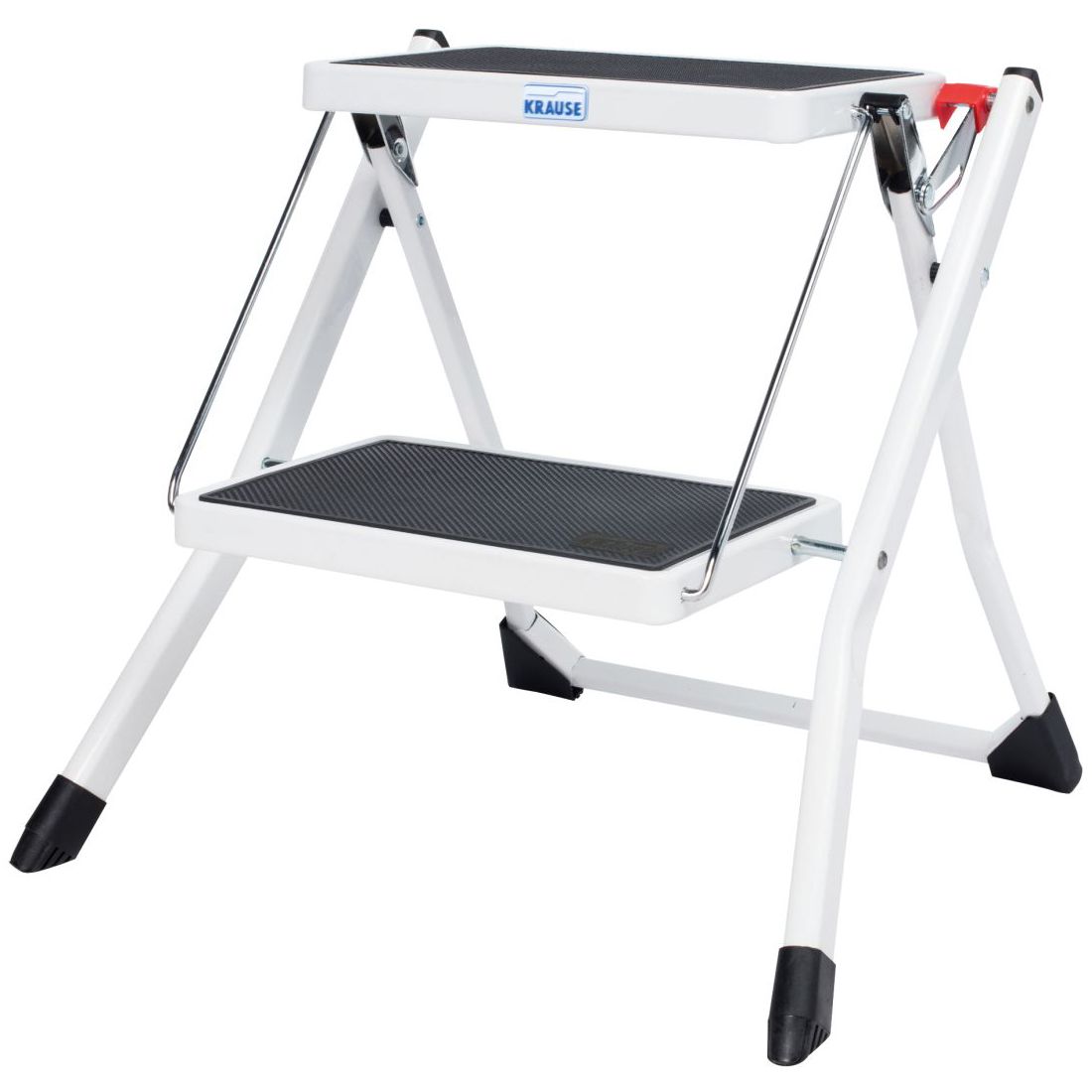 Könnyű és kompakt acélfellépő hordozófogantyúval és kioldógombbal. Két nagy lépcsőfok csúszásmentes felülettel biztosítja a biztonságos feljutást és a stabilitást. Összecsukott állapotban a fellépő mindössze 40 mm mély, így szinte bárhová elfér. A praktikus hordozófogantyú biztosítja kényelmes szállítást.